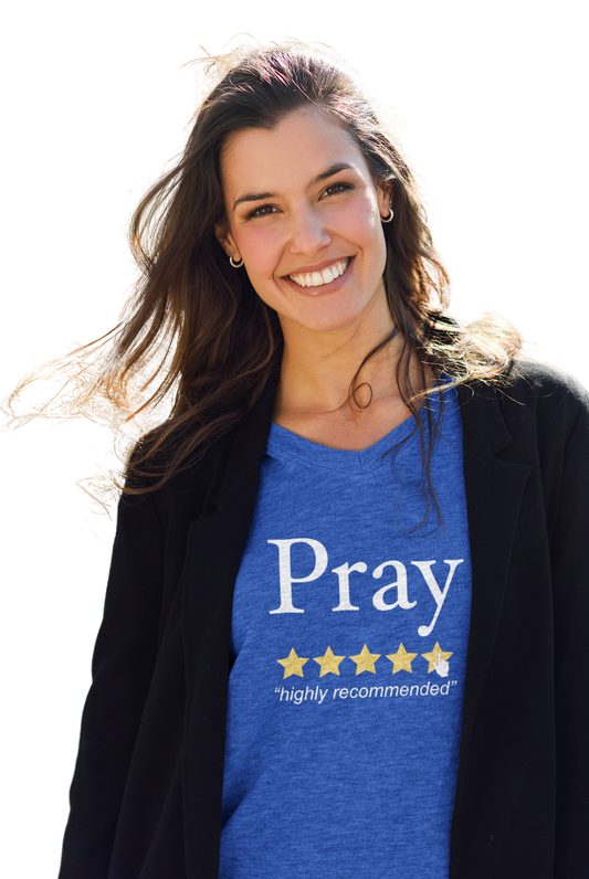 Pray Highly Recommended: Unisex V-Neck (Available in more colors)